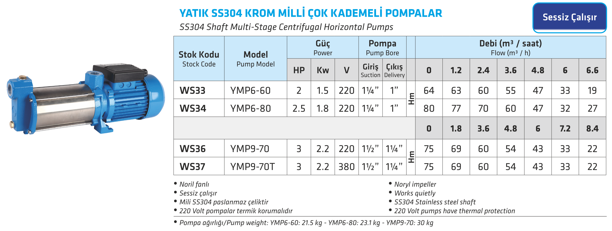 YATIK SS304 KROM MİLLİ ÇOK KADEMELİ POMPALAR
