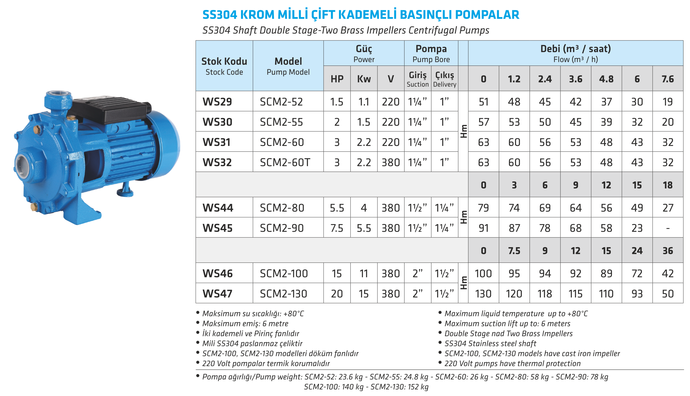 SS304 KROM MİLLİ ÇİFT KADEMELİ BASINÇLI POMPALAR