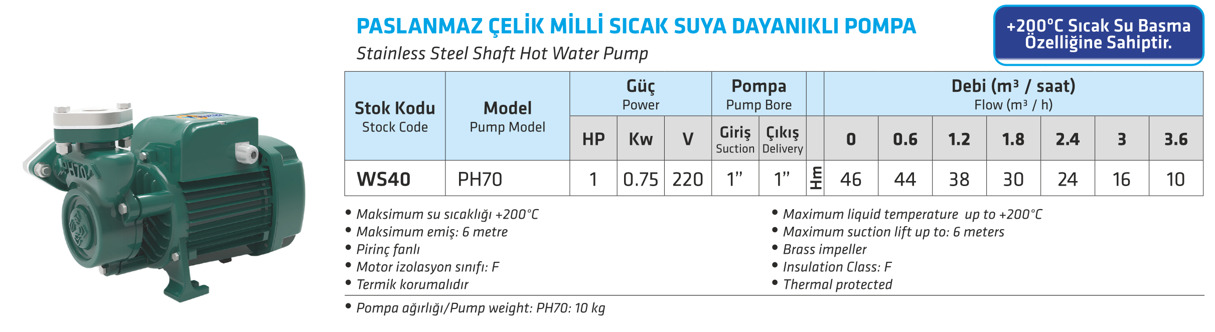 PASLANMAZ ÇELİK MİLLİ SICAK SUYA DAYANIKLI POMPA