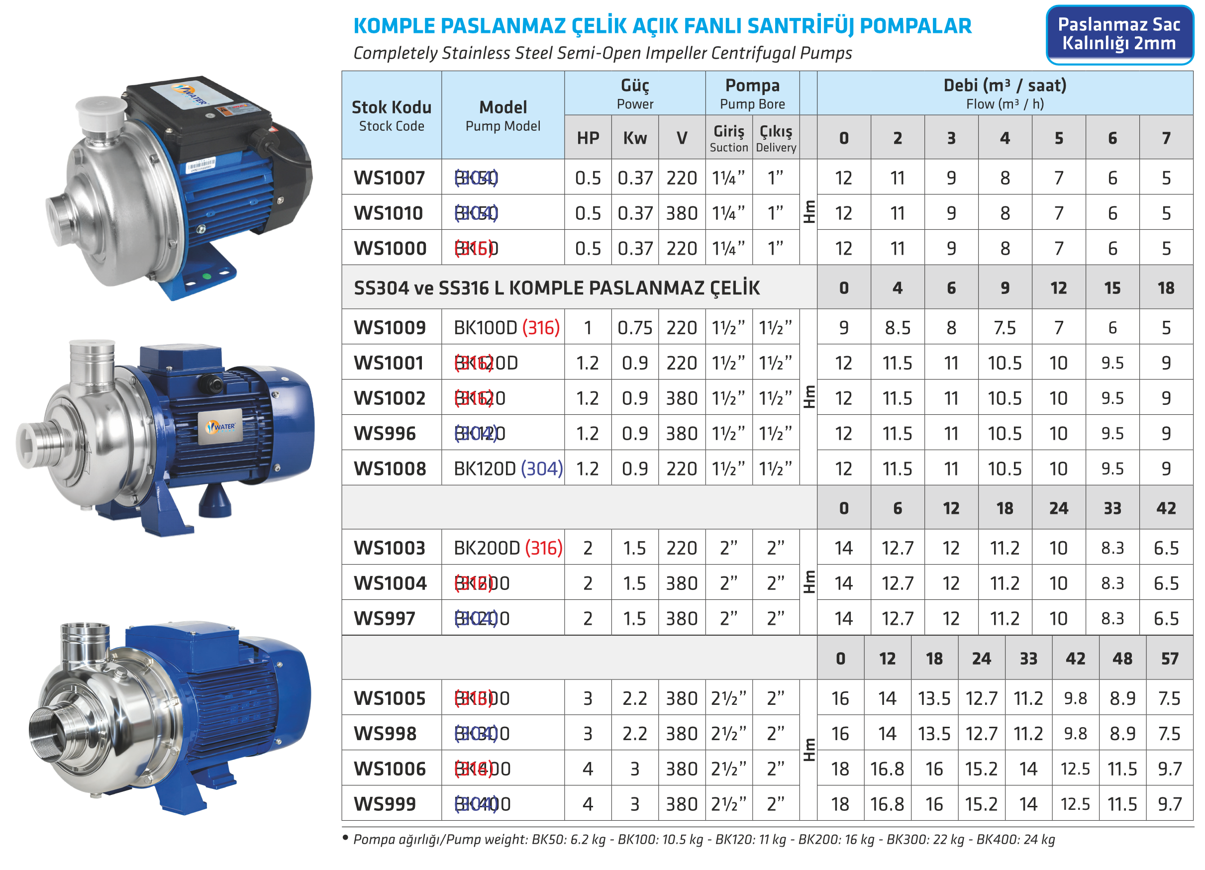 Komple Paslanmaz Çelik Açık Fanlı Santrifüj Pompalar