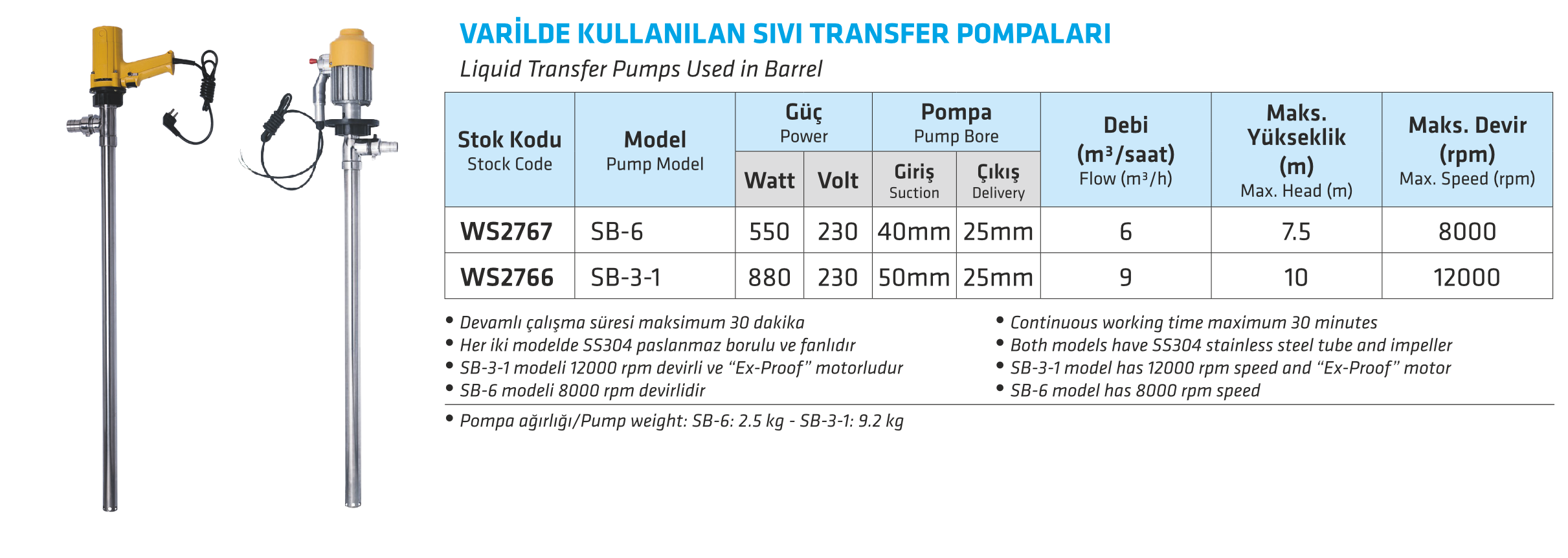 VARİLDE KULLANILAN SIVI TRANSFER POMPALARI