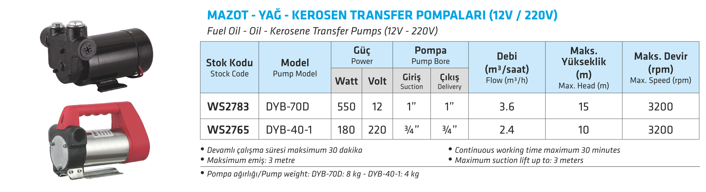 MAZOT - YAĞ - KEROSEN TRANSFER POMPALARI (12V / 220V)