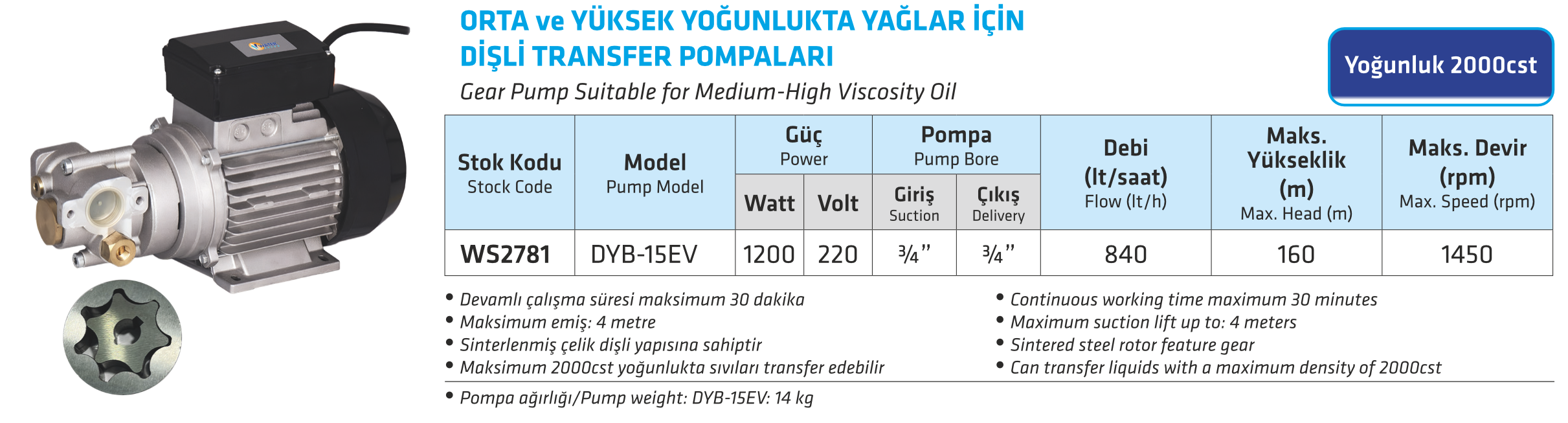 ORTA VE YÜKSEK YOĞUNLUKTA YAĞLAR İÇİN DİŞLİ TRANSFER POMPALARI