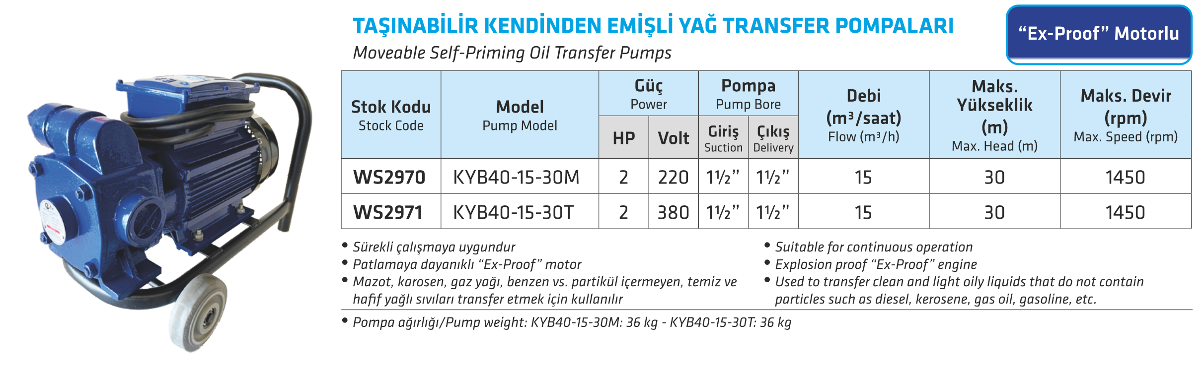 TAŞINABİLİR KENDİNDEN EMİŞLİ YAĞ TRANSFER POMPALARI