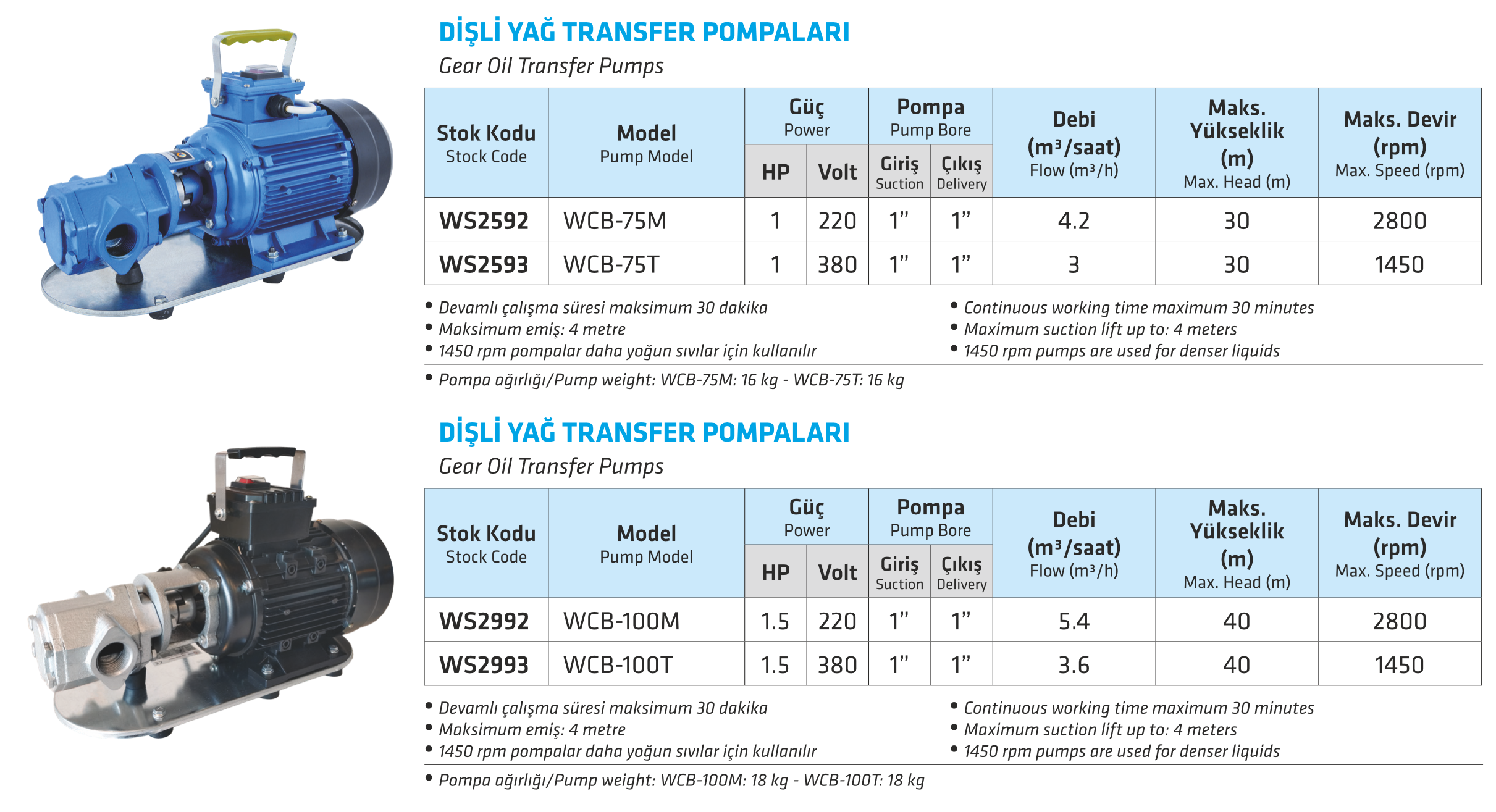 DİŞLİ YAĞ TRANSFER POMPALARI