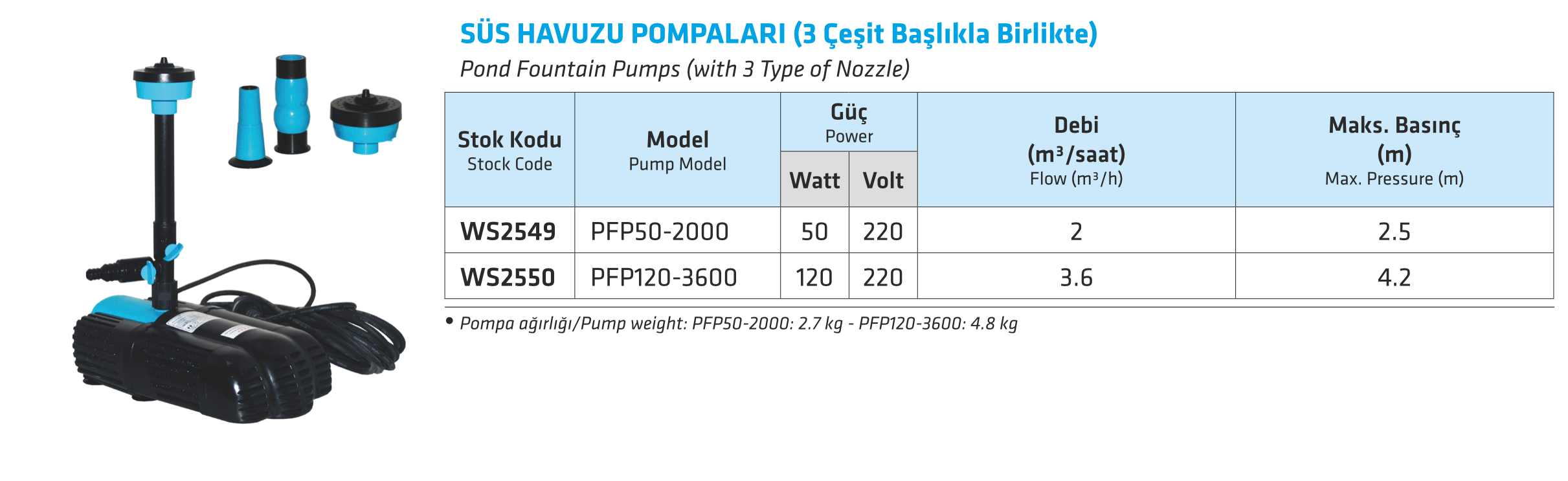 SÜS HAVUZU POMPALARI (3 ÇEŞİT BAŞLIKLA BİRLİKTE)