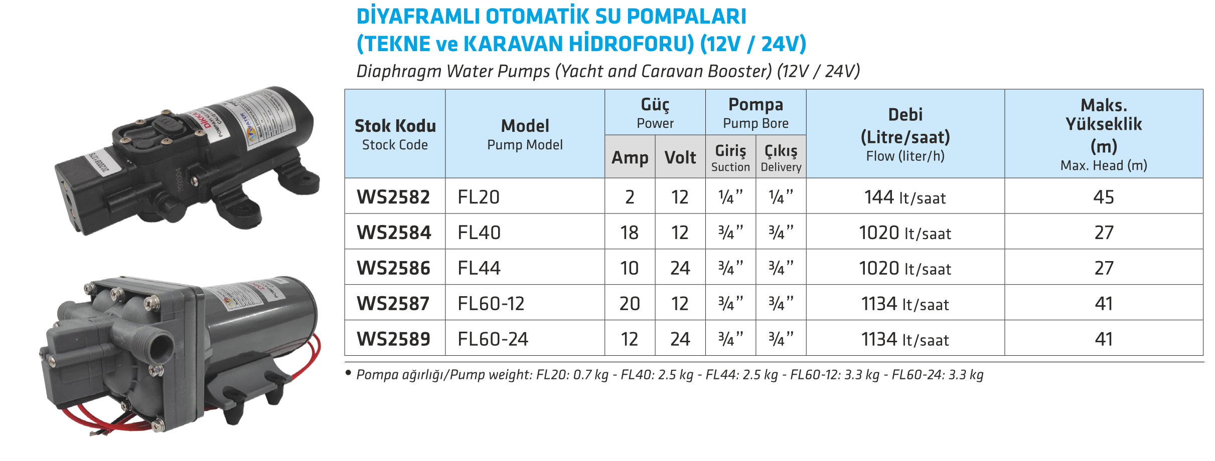 DİYAFRAMLI OTOMATİK SU POMPALARI (TEKNE VE KARAVAN HİDROFORU) (12V / 24V)