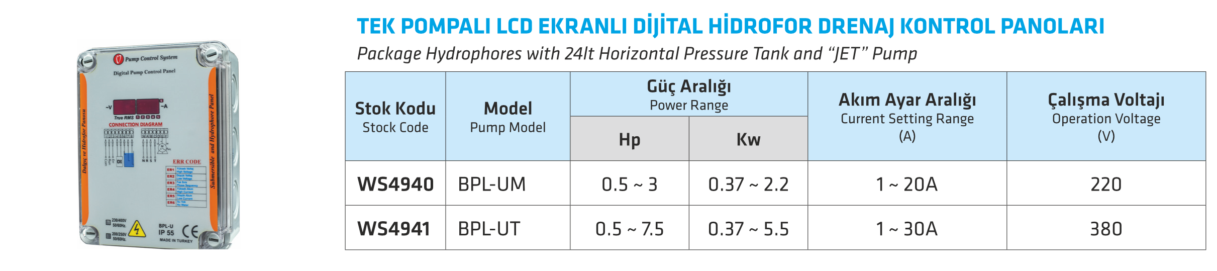 TEK POMPALI LCD EKRANLI DİJİTAL HİDROFOR DRENAJ KONTROL PANOLARI