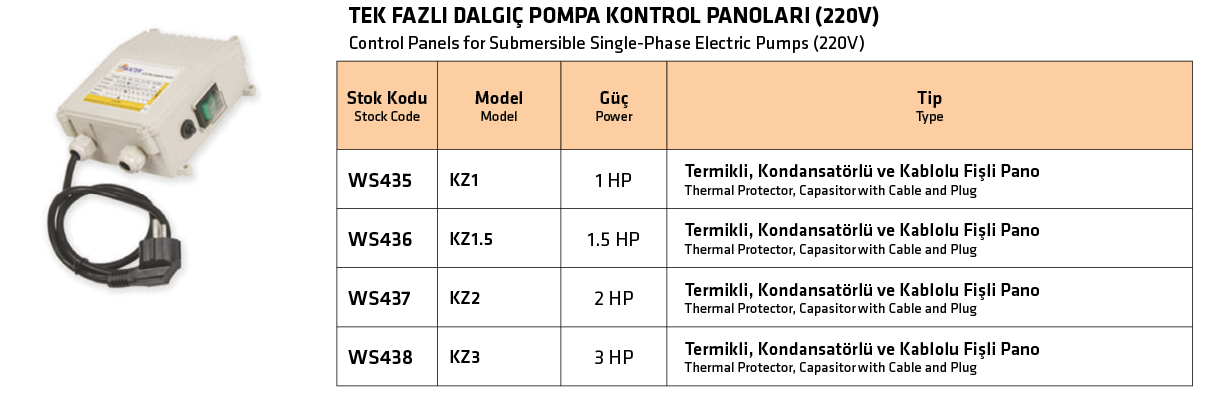 TEK FAZLI DALGIÇ POMPA KONTROL PANOLARI (220V)