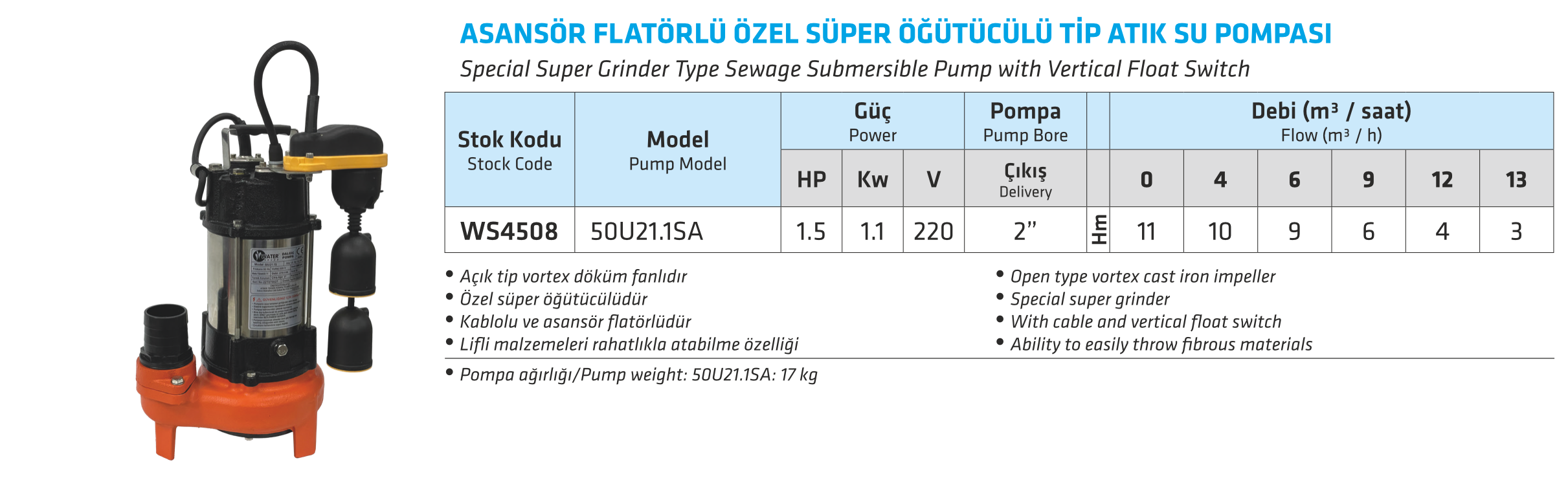 ASANSÖR FLATÖRLÜ ÖZEL SÜPER ÖĞÜTÜCÜLÜ TİP ATIK SU POMPASI