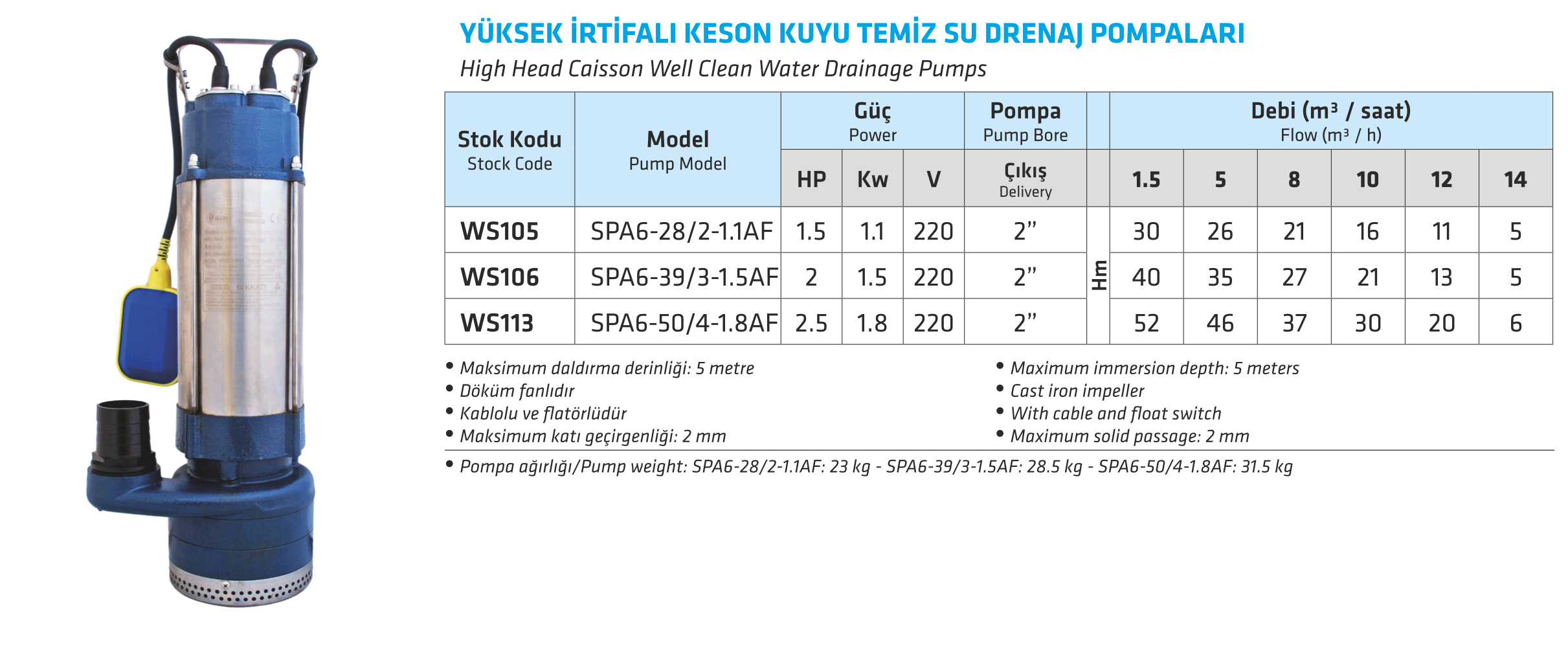 YÜKSEK İRTİFALI KESON KUYU TEMİZ SU DRENAJ POMPALARI