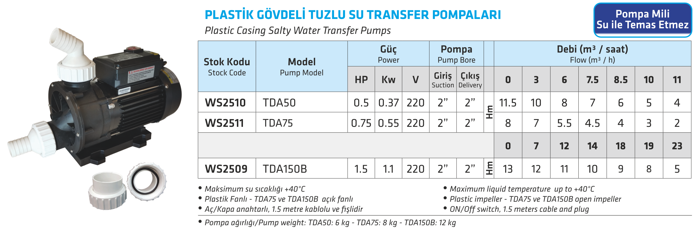 PLASTİK GÖVDELİ TUZLU SU TRANSFER POMPALARI