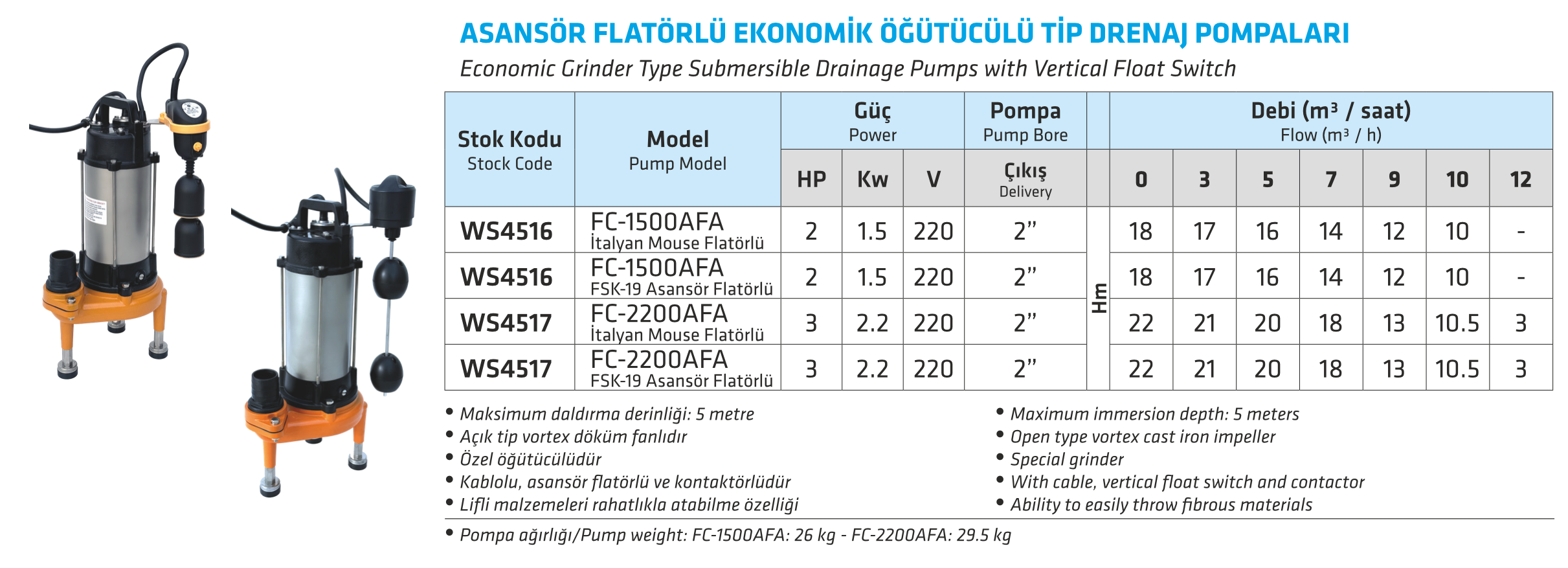 ASANSÖR FLATÖRLÜ EKONOMİK ÖĞÜTÜCÜLÜ TİP DRENAJ POMPALARI