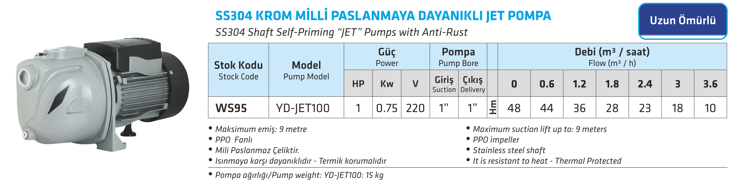 SS304 KROM MİLLİ PASLANMAYA DAYANIKLI JET POMPA
