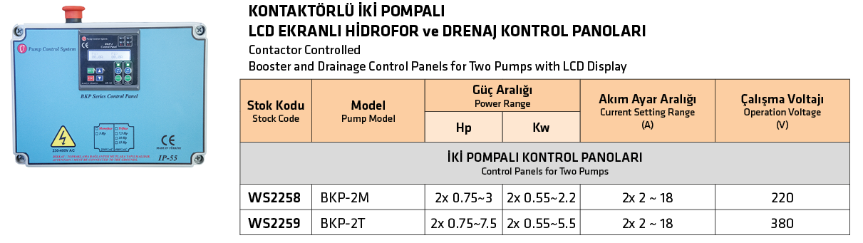Kontaktörlü İki Pompalı LCD Ekranlı Hidrofor ve Drenaj Kontrol Panoları