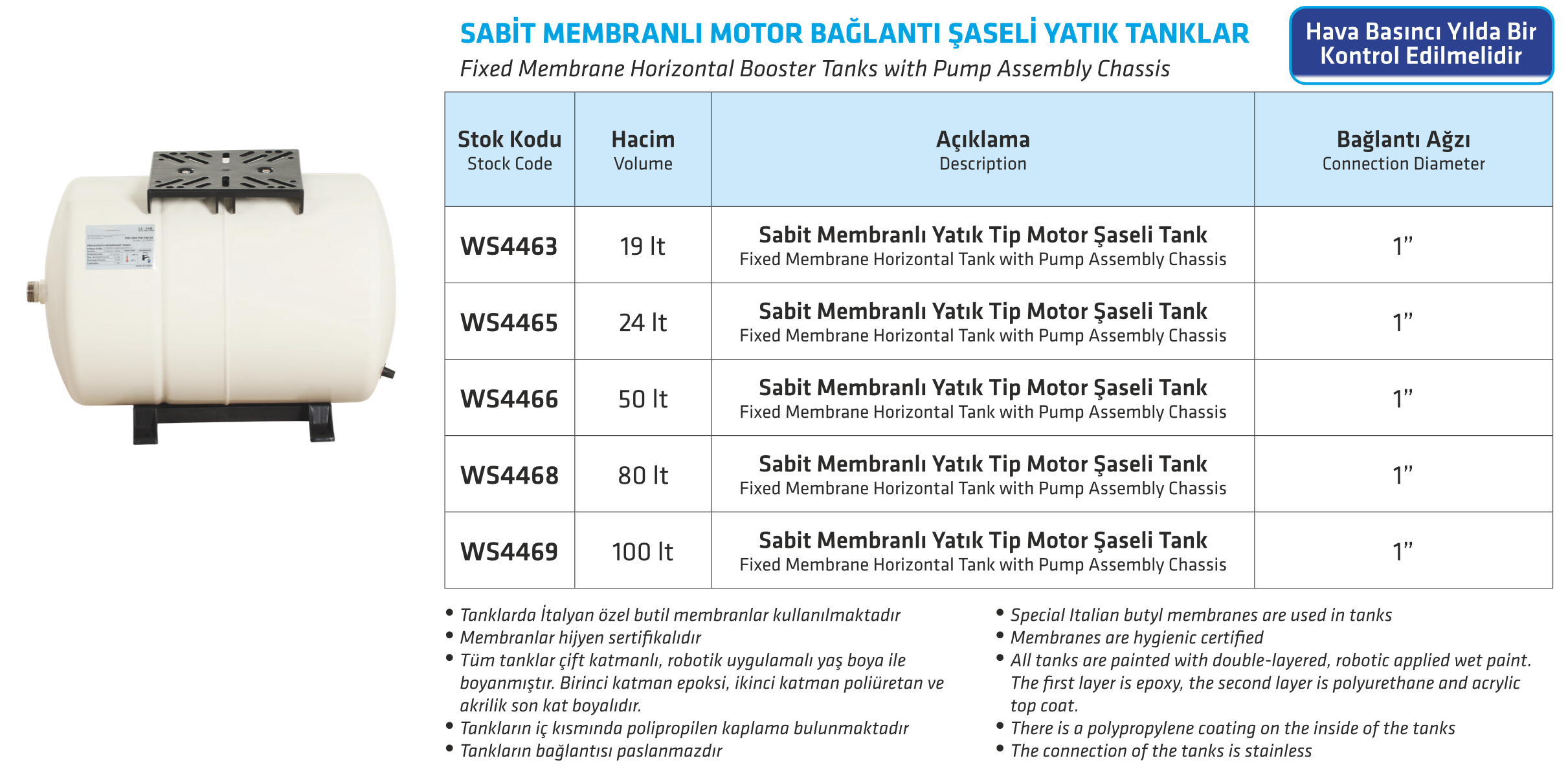 SABİT MEMBRANLI MOTOR BAĞLANTI ŞASELİ YATIK TANKLAR