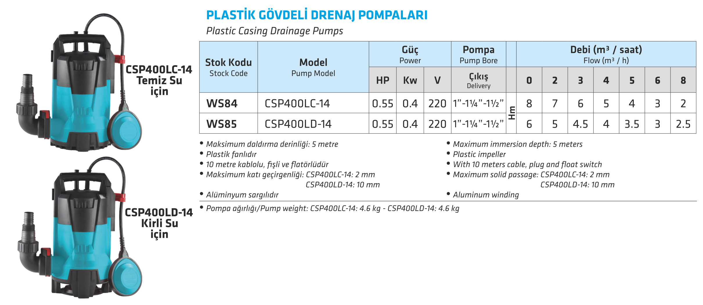 Plastik Gövdeli Temiz Su Drenaj Pompaları