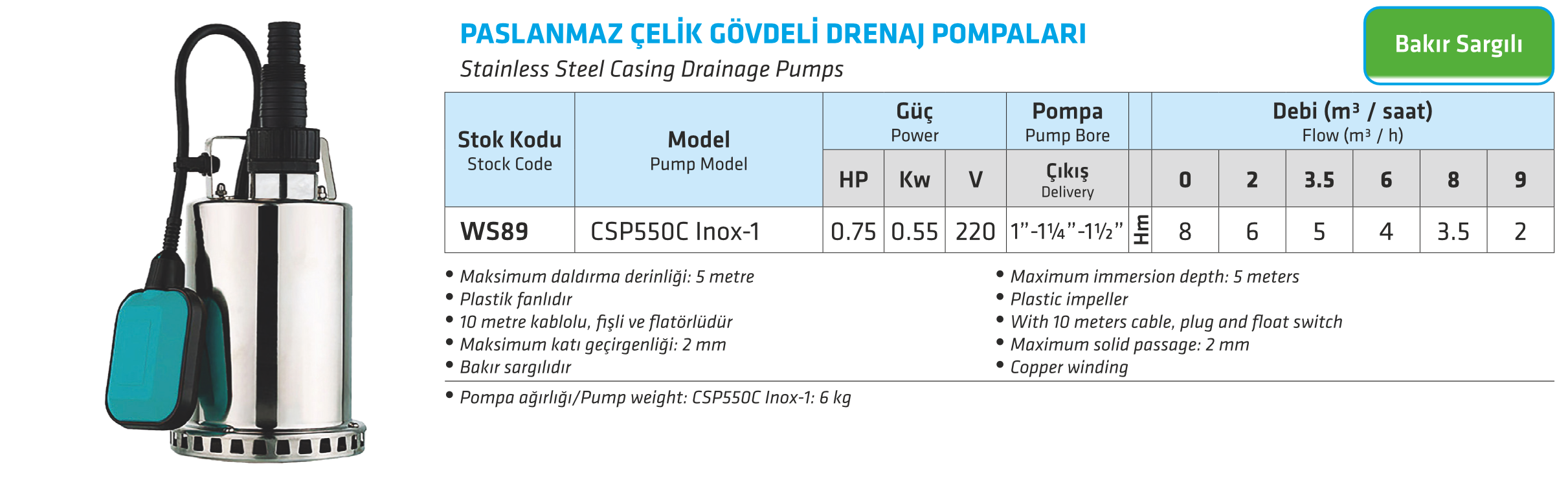 PASLANMAZ ÇELİK GÖVDELİ DRENAJ POMPALARI