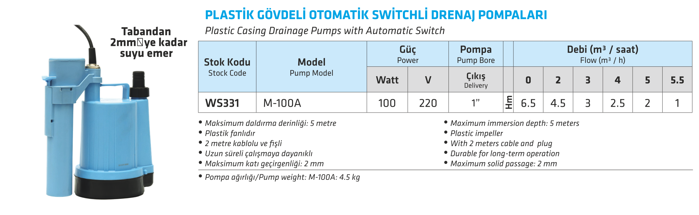 PLASTİK GÖVDELİ OTOMATİK SWİTCHLİ DRENAJ POMPALARI