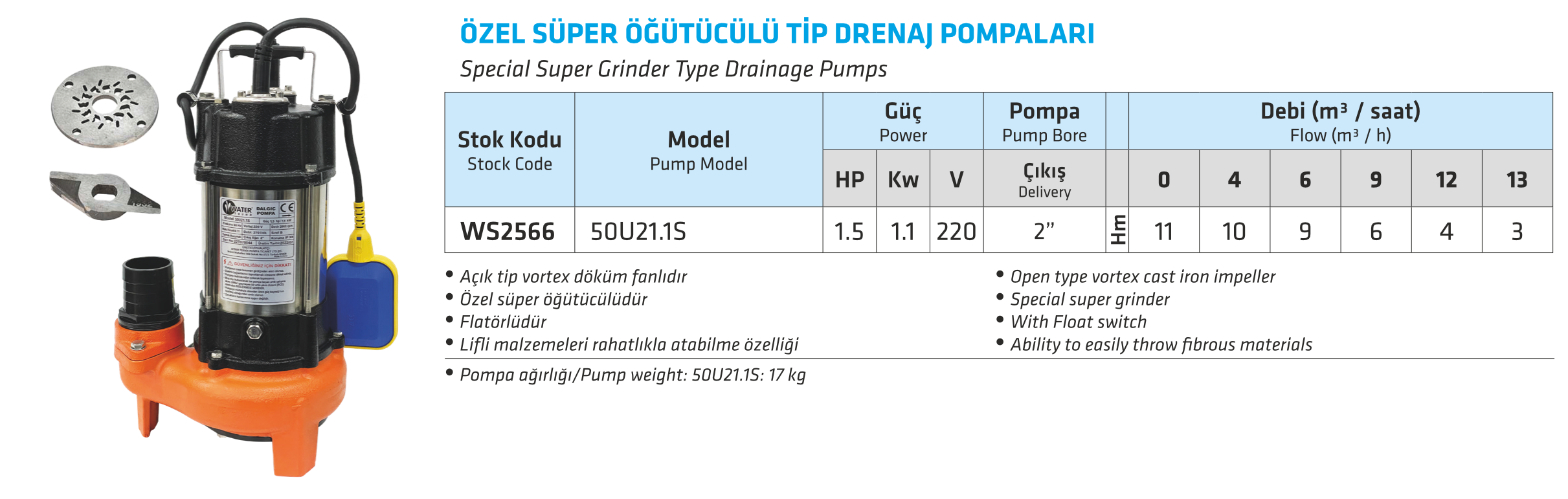 ÖZEL SÜPER ÖĞÜTÜCÜLÜ TİP DRENAJ POMPALARI